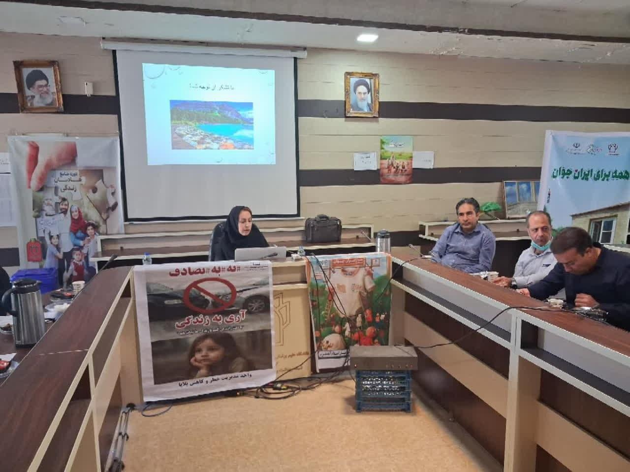 برگزاری جلسه آموزشی در ارتباط با موازین ایمنی و بهداشتی در محیط کار توسط کارشناسان واحد بهداشت حرفه ای مرکز بهداشت جهت مسئولین فنی و کارشناسان بهداشت حرفه ای شاغل در صنایع شهرستان و در ادامه خانم دکتر خلیلی در خصوص جوانی جمعیت و خانم پرندین در رابطه با خودمراقبتی در بحران نظامی صحبت کردند.